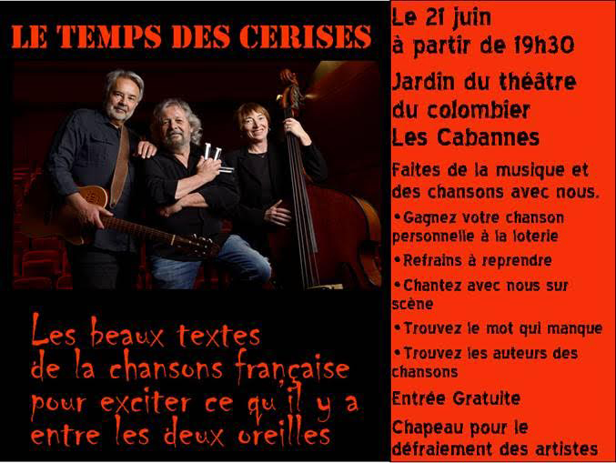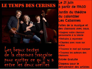 Soirée chanson française le Dimanche 21 juin 2015 à 19h30 dans le jardin du Théâtre le Colombier.