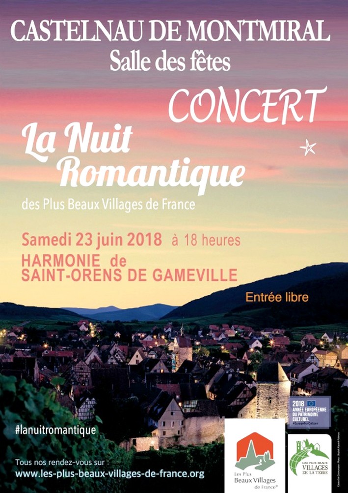 Le village s’associe à la fête nationale des plus beaux villages de France . Un concert festif est prévu sur le thème romantique de la fête. A la suite du concert les résultats du concours de poésie du « printemps des poètes » seront proclamés et les prix remis aux lauréats.