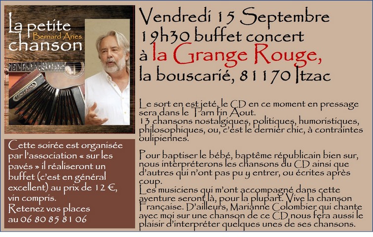 Vendredi 15 septembre 2017, concert de Bernard ARIES à la Grange Rouge.