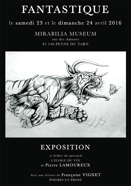 Pierre Lamoureux installé depuis peu à Bruniquel, expose ses dessins ‘fantastiques’, évoque son itinéraire artistique hors du commun … peintre, danseur, comédien, évoque son nouveau spectacle l’Eloge du Vin d’après un poème égyptien du XIIIème siècle d’Omar Ibn Al Faridh…