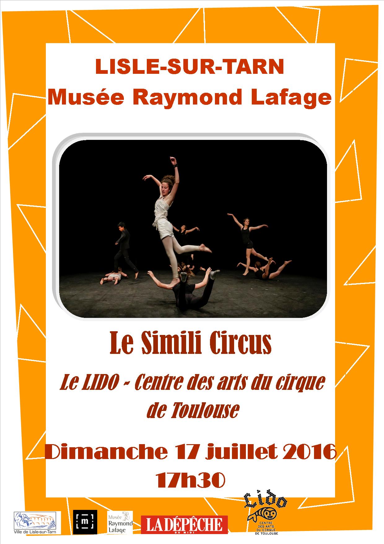 Dans le cadre de son exposition « Le Cirque au temps de Toulouse-Lautrec » et poursuivant son cycle de conférences et d’animations, le musée Raymond LAFAGE accueille le Dimanche 17 Juillet 2016 à partir de 17h30, Le Simili Circus, (groupe de création de 13-17 ans) spectacle circassien par Le LIDO, Centre des Arts du Cirque de Toulouse.