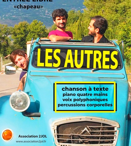 Dans le cadre de » Montmiral en Poésie », l’association 2 JOL vous propose un spectacle de chansons françaises par un groupe de jeunes artistes «LES AUTRES». Ce sont des créateurs qui perpétuent la tradition « troubadours » avec des textes travaillés, beaux et forts accompagnés d’un piano et de voix et sons, inventifs.