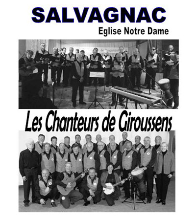Le dimanche 11 mars 2012 à 17 heures, en l’église NOTRE-DAME de Salvagnac, l’association Culture et Tourisme a le plaisir de recevoir la chorale de Giroussens. C’est le plus ancien chœur d’hommes du Tarn toujours en activité.