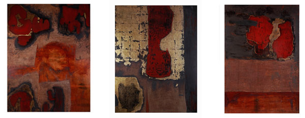 Jeune talent de l’art abstrait, V. Cazeneuve est un puriste. Il refuse d’utiliser les matériaux industriels et toutes les matières qui garnissent ses toiles sont récupérées, façonnées, exploitées et tramées par l’artiste en personne. Il utilise pour cela des techniques ancestrales auxquelles il s’est initié en Chine où il passe les ¾ de l’année. Le suave mélange d’ardoise, de nacre, de feuille d’or et de toile de ramie illumine l’espace. Vincent Cazeneuve démontre que l’art abstrait n’est pas nécessairement froid et austère : ses laques de Chine apaisantes réchauffent à merveille…