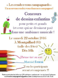 Rendez-vous pour un concours de dessin enfantins en musique le Samedi 22 Octobre 2016 dès 16 h !!
