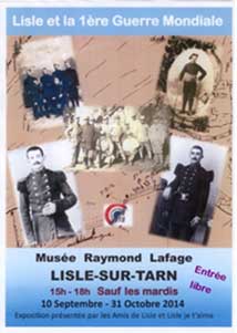 A l’occasion de l’exposition Lisle et la Première Guerre Mondiale organisée par les Amis de Lisle et Lisle je t’aime présentée au musée Raymond Lafage du 10 Septembre au 31 octobre 2014, nous avons le plaisir de vous convier à son vernissage le Vendredi 12 septembre 2014 à 18h.