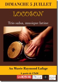 Le Musée Raymond Lafage poursuit son cycle de conférences et d’animations et vous propose le dimanche 5 juillet 2015 à 17h30, le groupe LOCOSON en concert.