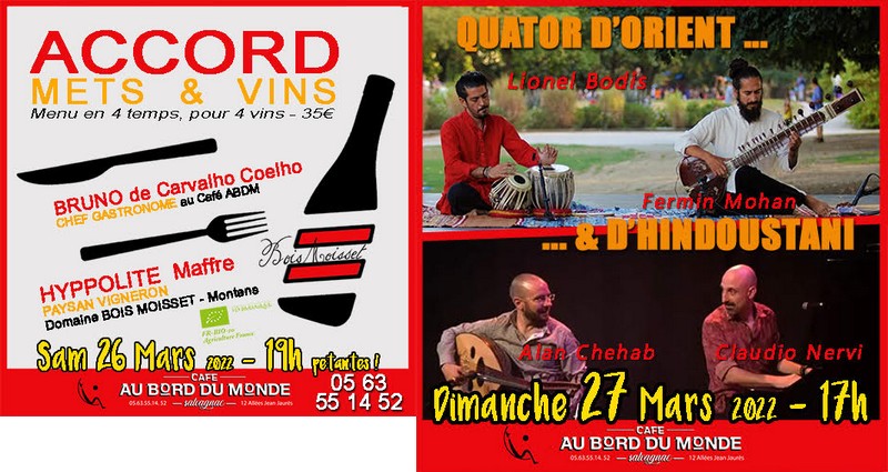 Samedi 26 et dimanche 27 mars 2022, café « Au bord du Monde ».