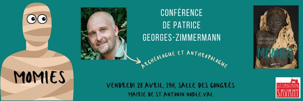 Alors, venez rencontrer Patrice Georges-Zimmermann ! Cet anthropologue vous fascinera, c’est certain ! Commissaire scientifique de l’exposition “Momies” présentée actuellement au Muséum de Toulouse, il nous présentera l’ouvrage édité en cette occasion et répondra à vos questions.