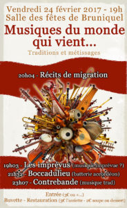 Nouvelle soirée incroyable pour partager et danser le Vendredi 24 Février 2017 à partir de 19h à la salle des fêtes ! Le cœur de la fête est encore à Bruniquel et toujours pour danser sur les frontières…