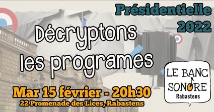L’élection présidentielle, c’est en avril.Après un débat sur le vote en janvier, en février on va décrypter collectivement les programmes de différents candidats à gauche.