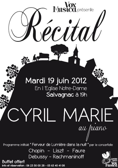 Mardi 19 juin 2012 à 19h, en l’Église Notre-Dame à Salvagnac : CYRIL MARIE au piano.