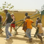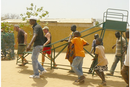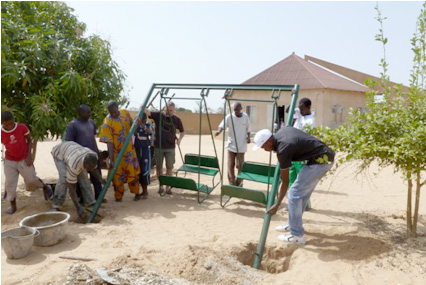 - Fabrication et pose par des artisans locaux d’une balançoire et d’un toboggan pour la « case des touts petits »