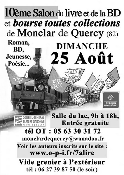 Le dimanche 25 août 2013, sur l’esplanade des lacs de Monclar de Quercyet dans la salle du lac,10 ieme Salon du livre et Grand vide grenier.
