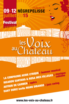 Organisée par l’association Nègr’Artis, la seconde édition du Festival « Les Voix au château » se déroulera du 9 au 12 juillet 2015, dans la cour intérieure du château de Nègrepelisse, lieu patrimonial remarquable du Tarn et Garonne abritant La cuisine, centre d’art et de design.