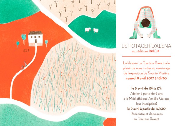 La Librairie Le Tracteur Savant accueille Sophie Vissière, une jeune illustratrice pleine de talent, le samedi 8 et dimanche 9 avril 2017. Son livre « Le potager d’Alena » vient de paraître aux éditions Hélium.