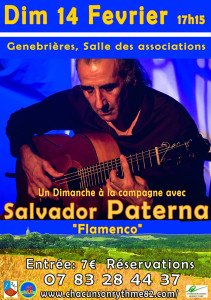 Le Dimanche 14 Février 2016, l’association Chacun Son Rythme vous propose Un Dimanche à la Campagne avec Salvador Paterna (flamenco), à partir de 17h00, dans la salle des associations.