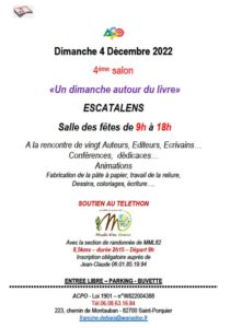 Dimanche 4 décembre 2022, de 9h. à 18h., à la salle des fêtes