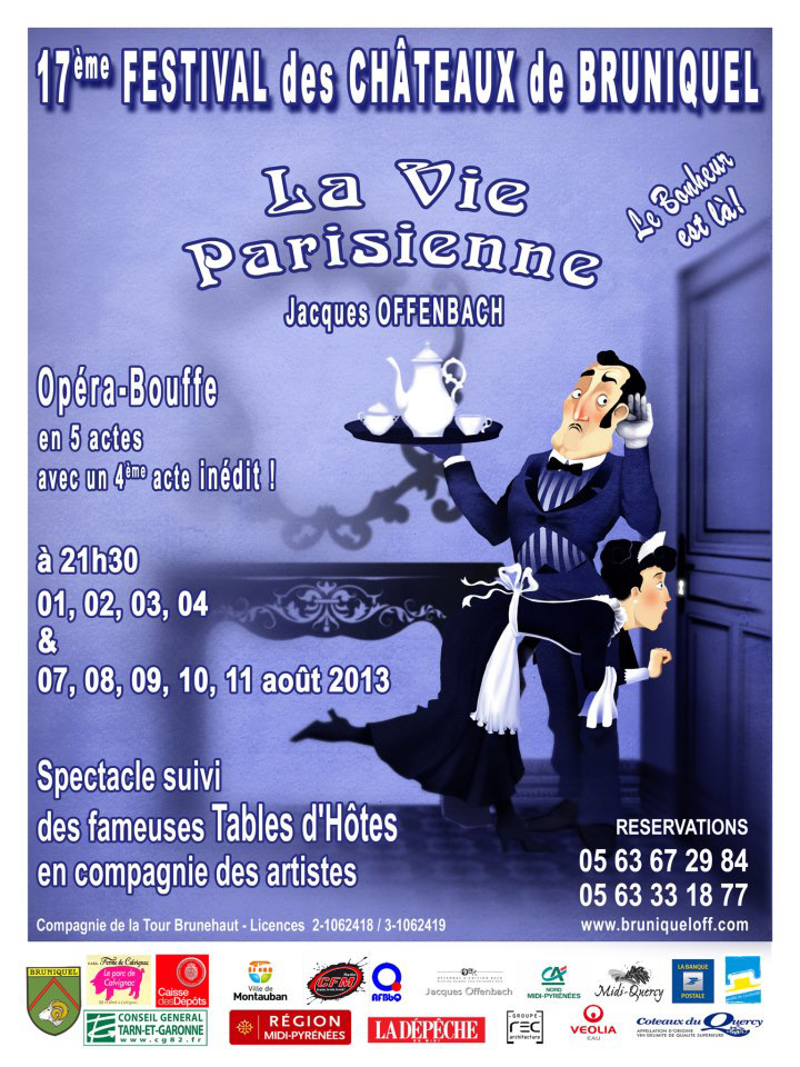 Monter la Vie Parisienne au château de Bruniquel c’est déjà un exploit mais dénicher dans les archives du grand Jacques Offenbach une version jamais donnée et pourtant bien plus intéressante que celle qui est jouée habituellement c’est tout à fait exceptionnel. Il fallait l’érudition de Jean-Christophe Keck, grand spécialiste de l’œuvre d’Offencbach, Directeur musical et co-animateur du Festival depuis le premier jour. Frank Thézan s’en est saisi pour rendre la pièce d’Offenbach parfaitement compréhensible et encore plus riche de plusieurs niveaux de lecture. On lui connait ce talent de rendre limpides les intrigues les plus tordues, d’équilibrer les morceaux de bravoure et les intermèdes de « recadrage» qui font de ses spectacles de grands moments musicaux appréciés de tous les publics. Ses nombreux fidèles en attestent, le Festival de Bruniquel c’est très particulier : exigeant et populaire, divertissant et profond, musicalement impeccable et joyeusement convivial.
