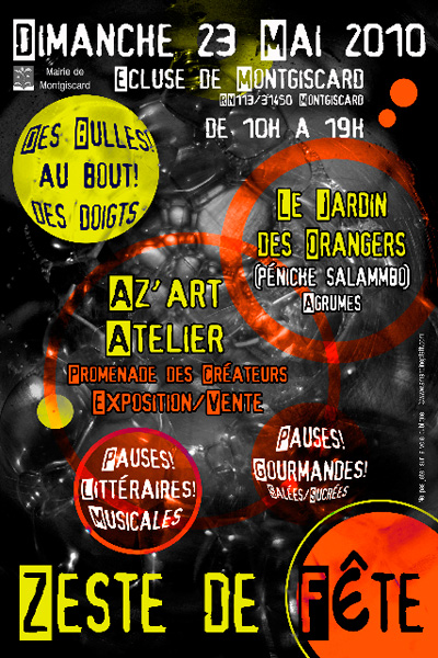 C’est à ces rêveries et à la recherche de multiples façons de conjuguer la «bulle» que le collectif Az’art Atelier et le Jardin des Orangers, avec le soutien de la Mairie de MONTGISCARD, ont choisi de nous entraîner pour cette 2ème édition de ZESTE DE FÊTE, à commencer par la transformation de l’écluse de Montgiscard en «fabrique à bulles» :