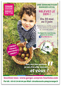 Tentez l’expérience et inscrivez-vous vite sur le site www.gorges-aveyron-tourisme.com. Un kit « Manger local » vous sera fourni (livret de recettes, liste des partenaires de l’opération, liste des fruits et légumes de saison,..)