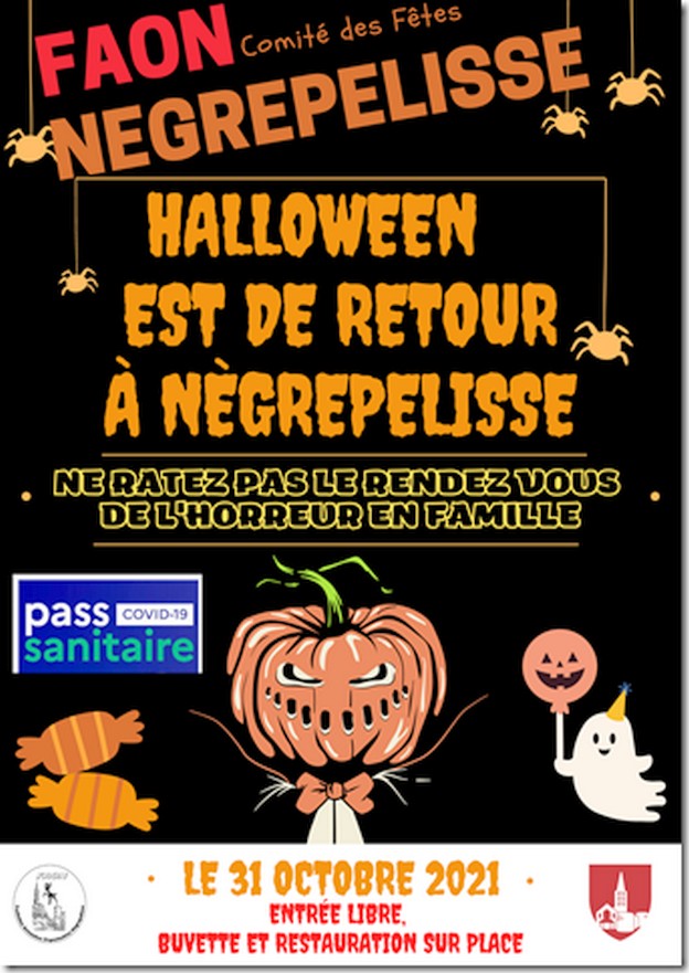 - Dès 21h, retrouvons nous à la salle des fêtes pour une soirée dansante effrayante avec restauration et buvette sur place.