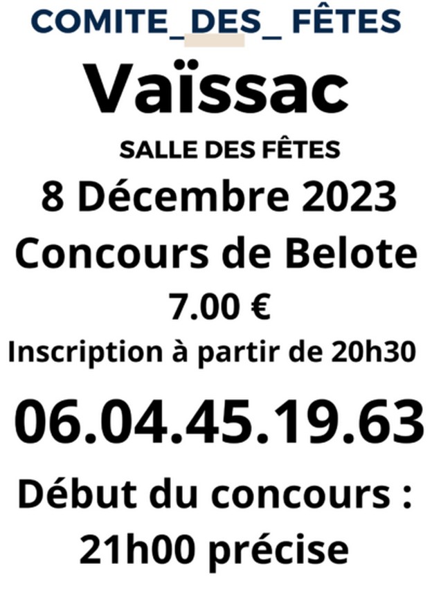Vendredi 8 décembre 2023, 20h.30 à la salle des fêtes.