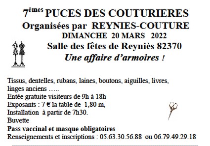 Pour s’inscrire, cliquez: Inscription Puces des Couturières REYNIES
