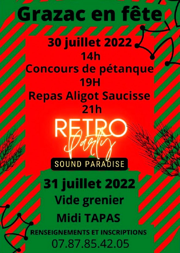 - 14h. Concours de pétanque en doublette (cloture des inscriptions à 14h.30)