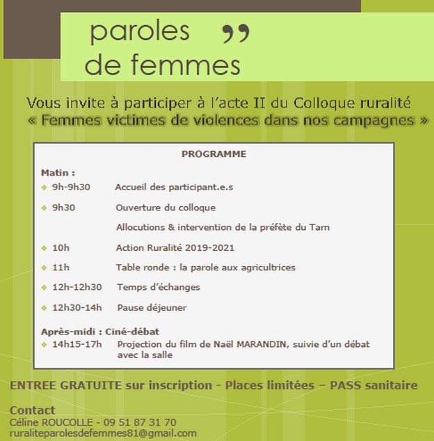 L’équipe de Paroles de Femmes se tient à votre disposition pour tout renseignement complémentaire, idéalement par courriel à l’adresse ruraliteparolesdefemmes81@gmail.com