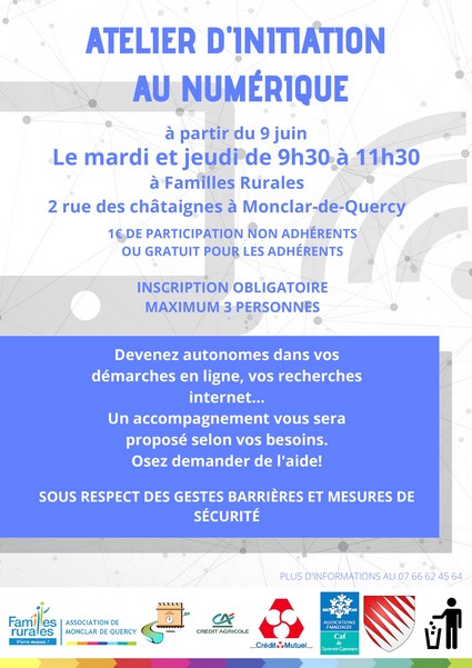 L’Atelier initiation à l’informatique : A partir du 9 juin sera ré ouvert le mardi et le jeudi matin de 9h30 à 11h30,sur inscription ( maximum 3 personnes)