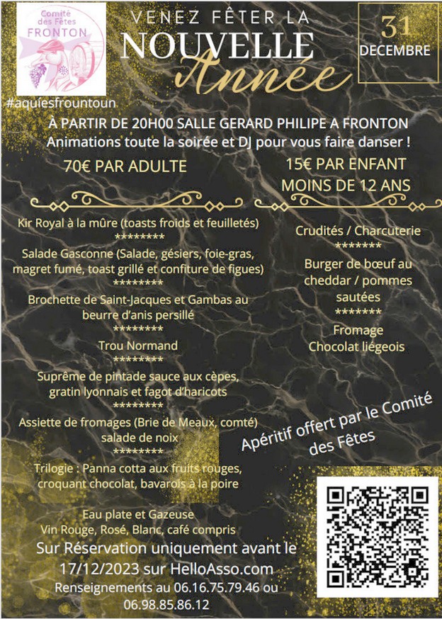 Dimanche 331 décembre 2023, à partir de 20h. salle Gérard Philipe.