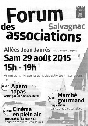 Samedi 29 août 2015, de 15h. à 19h., Forum des associations à Salvagnac, allées Jean Jaurès.