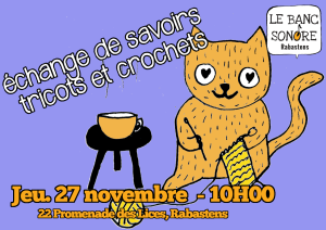 Un rendez vous pour échanger sur nos projets, partager nos savoirs-faire et dérouler nos pelotes autour d’une boisson chaude. Tous niveaux, le but est aussi l’entraide 🙂