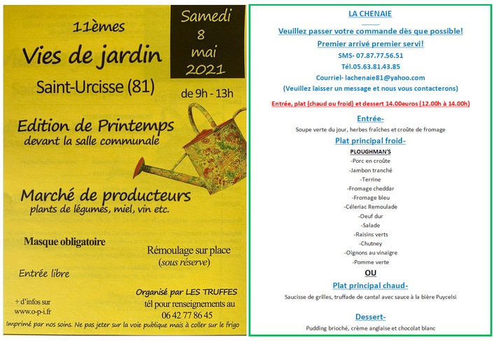 La Chênaie, le samedi 8 mai 2021,de 12h. à 14h.