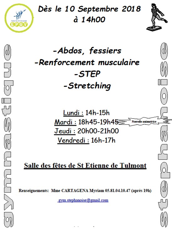 A partir du lundi 10 septembre 2018, à 14h. à la salle des fêtes de Saint Etienne de Tulmont.