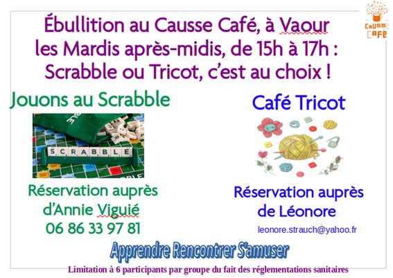 Tous les mardis après-midi, de 15 à 17 h. au Causse Café.