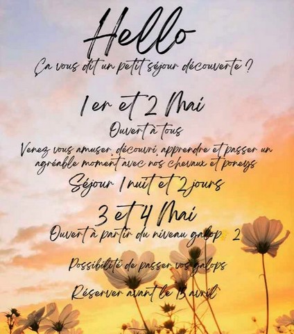 Les 3 et 4 Mai en niveau GALOP 2 minimum - Horaires :