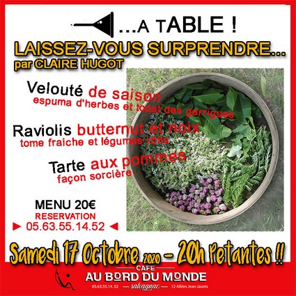 - Samedi 17 (20h pétantes !): Permacuisine créative par Claire Hugot