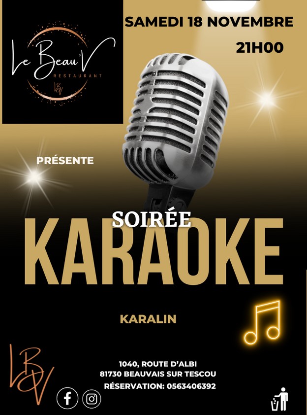 Samedi 18 novembre 2023, à 21h. au restaurant Le BeauV.