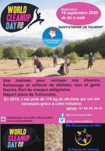 Parce que nous sommes tous concernés par la préservation de notre environnement, nous sommes tous invité, écoles, associations, entreprises et habitants de Saint Etienne de Tulmont par l’association « Ma commune et Moi », à agir en participant à la journée mondiale du nettoyage le samedi 19 septembre à 9h00 à midi sur la place du Tulmonenc. Cet appel, c’est surtout une invitation à venir passer un bon moment, parce qu’il n’y a pas mieux que de se sentir utile et se faire plaisir au travers des projets solidaires au profit de la commune et ses habitants, crédo de l’association.