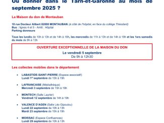 Santé Don du sang – Planning novembre 2025 … Tarn et Garonne (82) Octobre 2025 Partager : Cliquer pour envoyer un lien par e-mail à un ami(ouvre dans une nouvelle fenêtre) E-mail Cliquez pour partager sur Facebook(ouvre dans une nouvelle fenêtre) Facebook Cliquez pour partager sur WhatsApp(ouvre dans une nouvelle fenêtre) WhatsApp J’aime ça :J’aime chargement…